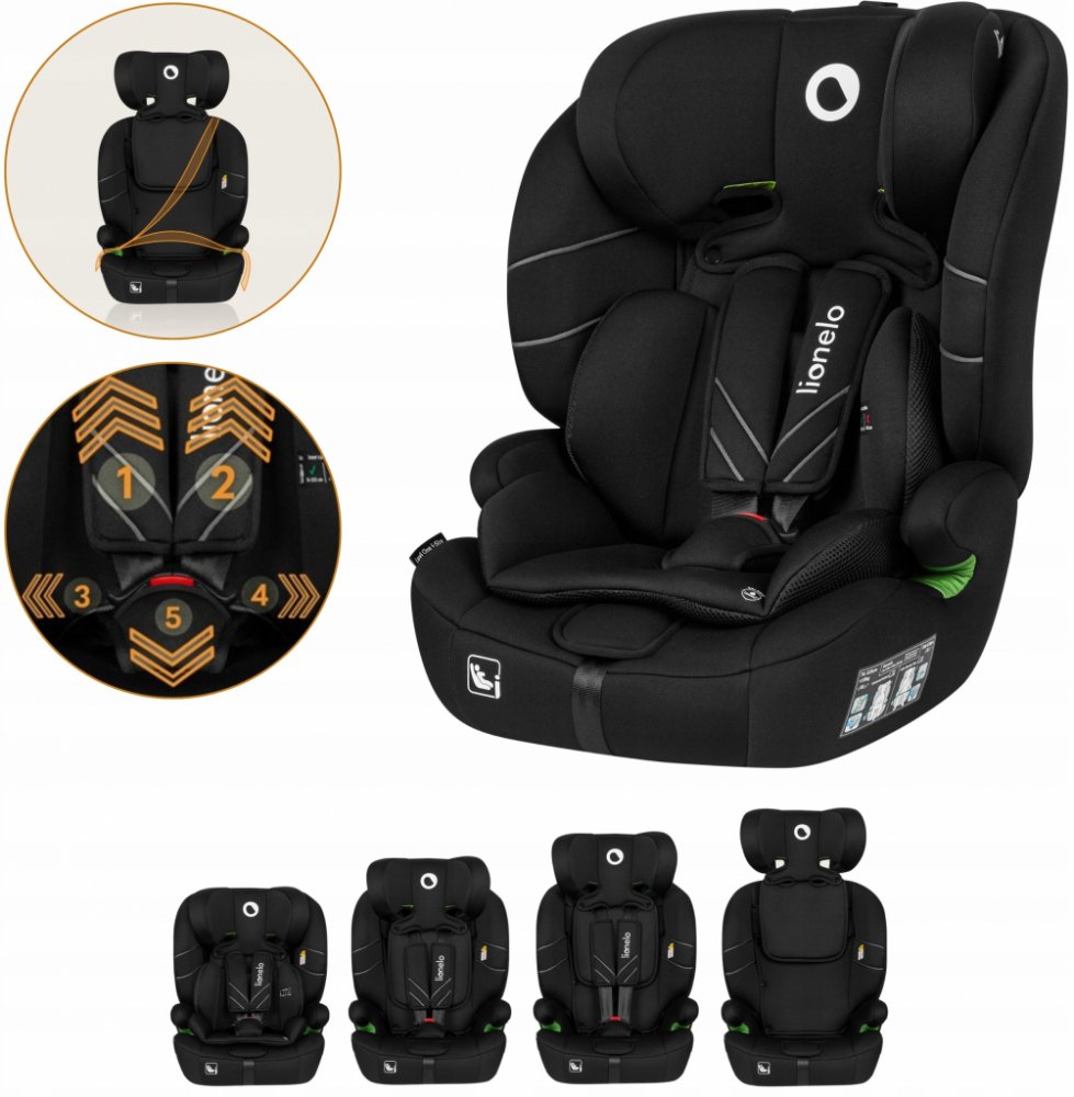 5.2 kg Lionelo 9 - 36 kg 0 až 5 let černé ECE R129 i-Size po směru jízdy pětibodový pás