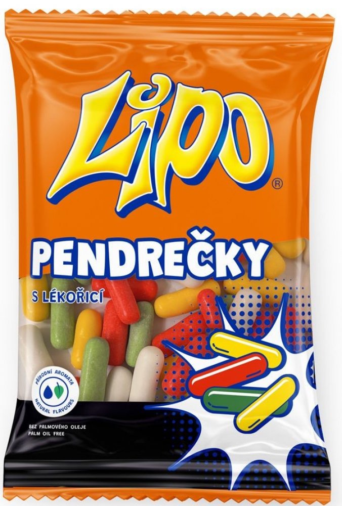 Výtečné malé pendreky s lékořicí Složení: cukr, pšeničná mouka, třtinová melasa, částečně invertovaný cukrový sirup, voda, glukózový sirup, lékořicový extrakt, kukuřičný a rýžový škrob, rostlinné tuky: palmojádrový, palmový, Shea; maltodextrin, aromata, zahušťovadlo: arabská guma; jedlá sůl, barviva: karoteny, kurkumin, měďnaté komplexy chlorofylů a chlorofylinů; emulgátor: mono- a diglyceridy mastných kyselin; lešticí látka: karnaubský vosk; konzervant: sorban draselný.Obsahuje lékořici – osoby s vysokým krevním tlakem by se měly vyvarovat nadměrné spotřeby.