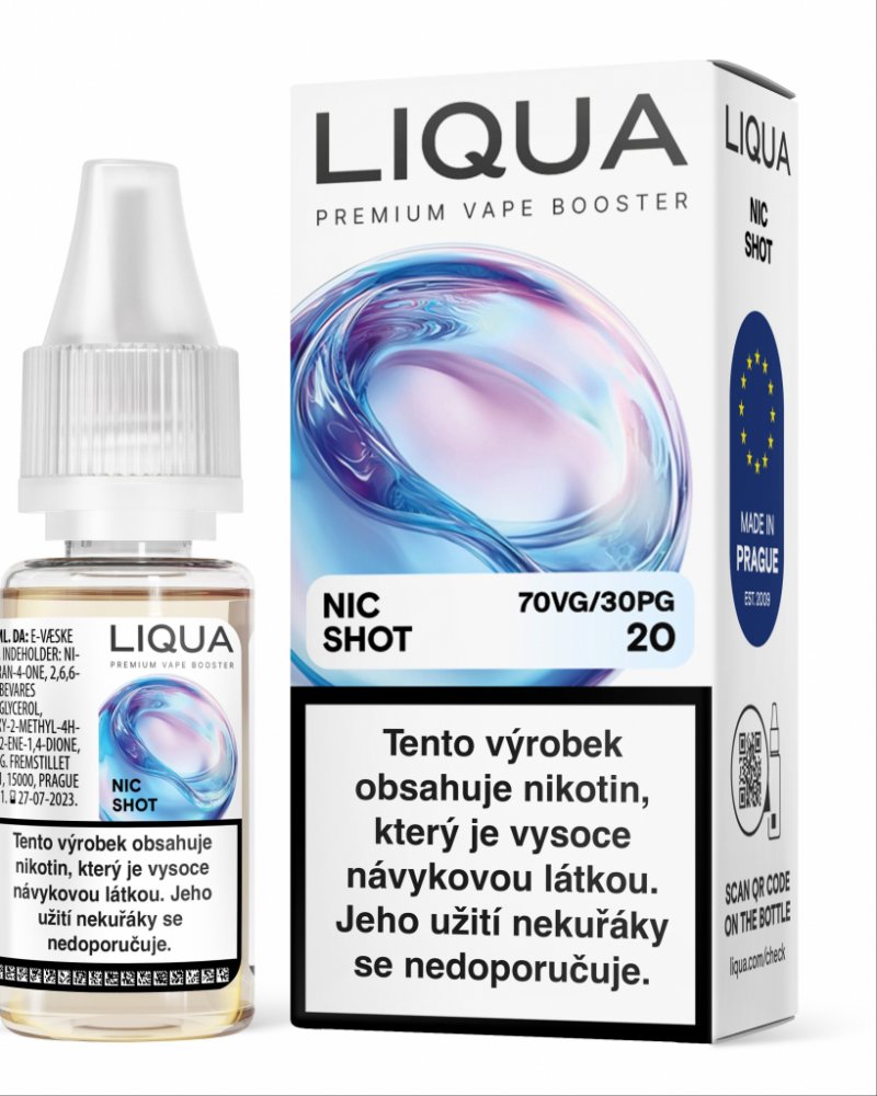 Nearomatizovaná booster báze Liqua Nic Shot představuje inovativní řešení pro všechny milovníky elektronických cigaret, kteří si rádi míchají vlastní e-liquidy přesně podle svých preferencí. Tato pokročilá nikotinová báze o objemu 10ml obsahuje níže uvedenou koncentraci klasického nikotinu, který poskytuje charakteristický výrazný pocit v krku při inhalaci, často vyhledávaný zkušenými uživateli. Klasický nikotin nabízí tradiční a intenzivní nikotinový prožitek s okamžitým nástupem účinku, který mnoho uživatelů preferuje pro autentický zážitek z kouření. Tyto Báze nabízí různé poměry základních složek PG a VG, a to buďto 50/50 PG/VG , případně 70/30 PG/VG vhodné pro různé styly vapování.