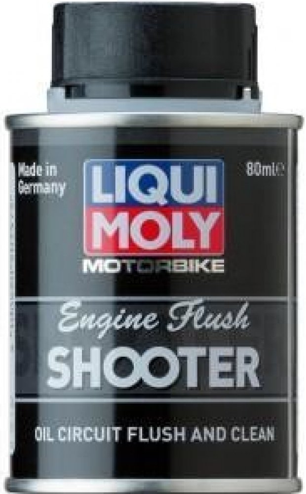 Liqui Moly Proplach motoru motocyklu Shooter Čisticí kapalina, která uvolňuje problematické usazeniny ze vnitřku motoru. Rozpouští usazeniny bahenního i pevného typu. V oleji rozpustné i nerozpustné zbytky všech druhů usazenin se rozptýlí v oleji a při jeho výměně se odstraní z olejového oběhu. Motor očištěný od usazenin a nečistot a naplněný čerstvým olejem, který rovněž není znečištěný těmito zbytky, může opět podávat plný výkon.