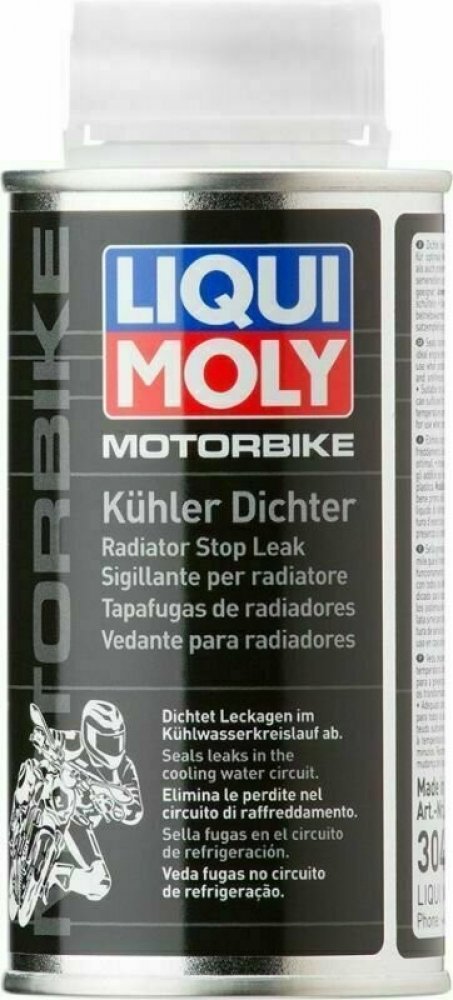 Disperzní přípravek, který slouží k utěsnění vodních chladicích systémů motocyklů. Spolehlivě utěsní vlasové trhlinky a menší netěsnosti. Rovněž je možno Utěsňovač chladiče Motorbike použít preventivně pro pojištění provedené opravy chladicího systému. Disperze pevných látek je stabilizována ve speciální nosné kapalině.