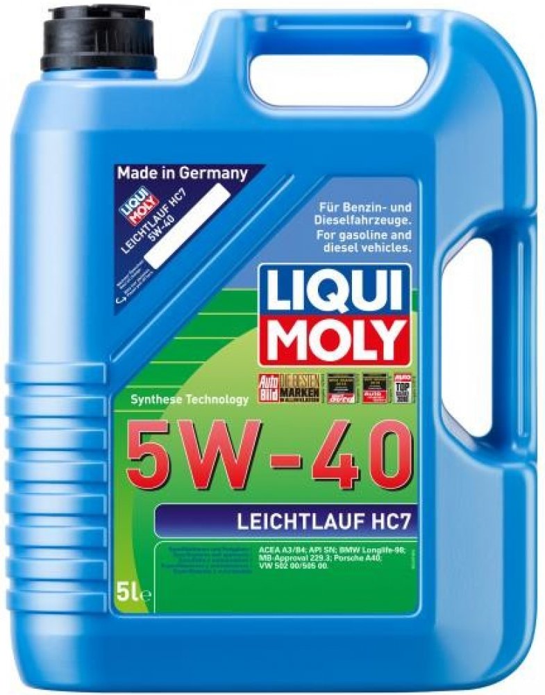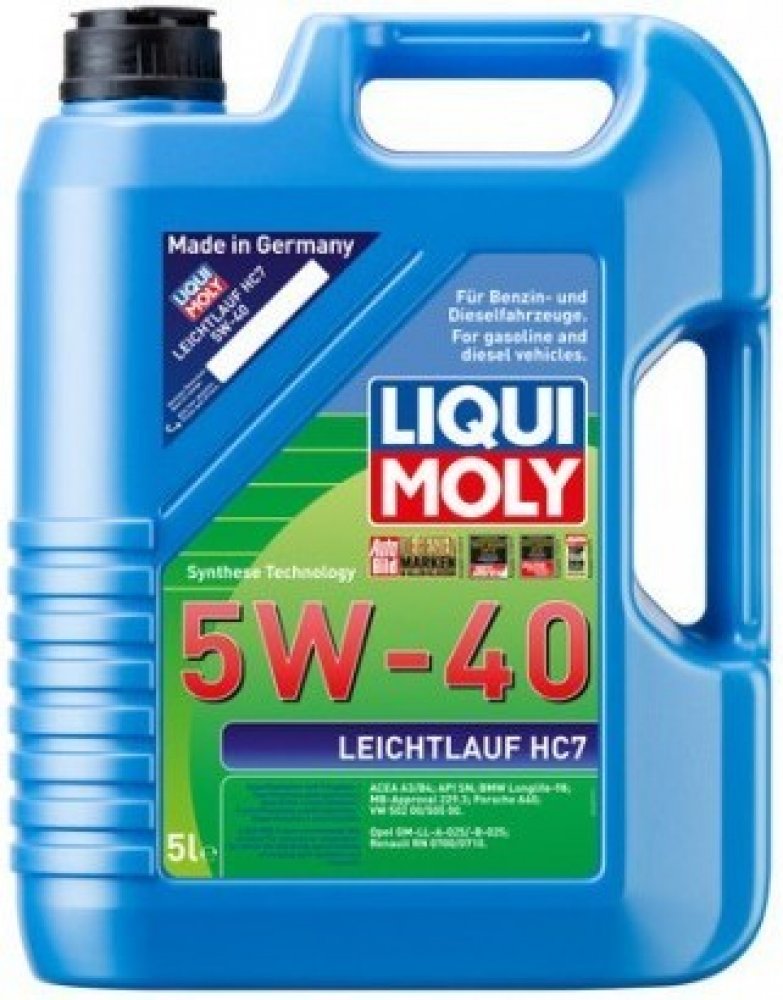 Liqui Moly Leichtlauf HC7 5W-40 Moderní lehkoběžný motorový olej špičkové třídy. Kombinace nekonvenčních základních olejů na hydrokrakové bázi s nejnovější technologií přísad dodávají oleji vlastnosti, které umožňují snížení spotřeby oleje a paliva. Olej zaručuje rychlé promazání motoru od prvních otáček. Rovněž se výborně hodí pro použití v osobních vozidlech s pohonem na plynná paliva (CNG/LPG). Celoroční motorový olej pro moderní víceventilové benzinové motory s i bez přeplňování turbodmychadlem a chlazení stlačeného vzduchu. Zvláště doporučený pro dlouhé intervaly výměny oleje a vysoké motorické požadavky.