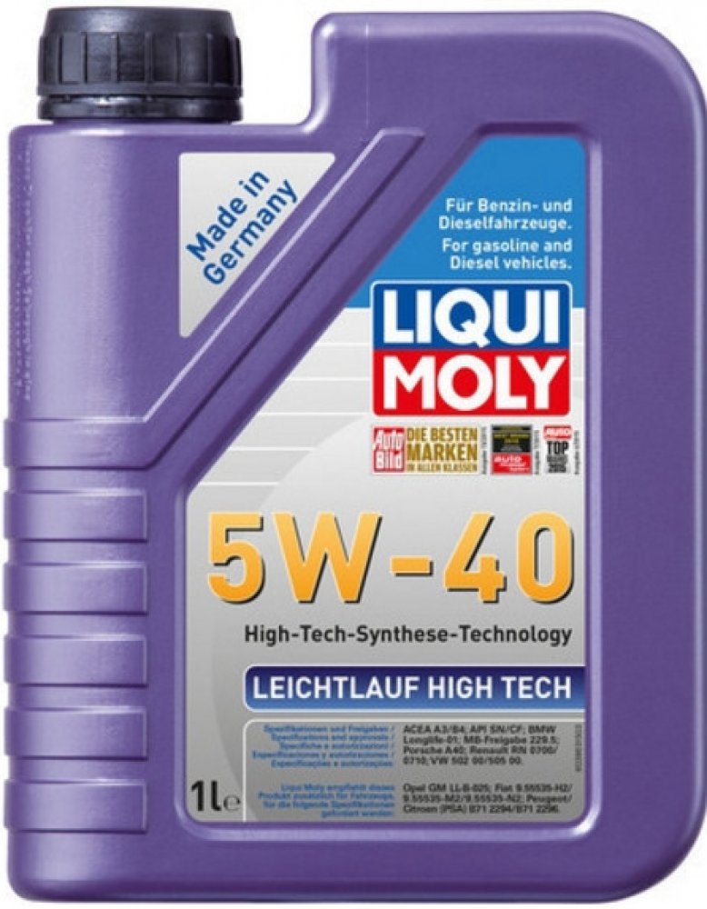 Motorový olej Leichtlauf High Tech 5W40 1L Vlastnosti: olej Synteticky olej obsah [litr] 1 l Viskozitní třída SAE 5W40 specifikace ACEA A3-08/B4-08, API SN/CF, VW 502 00, VW 505 00, BMW Longlife-01, MB 229.5, Porsche A40, Renault RN 0700, Renault RN 0710