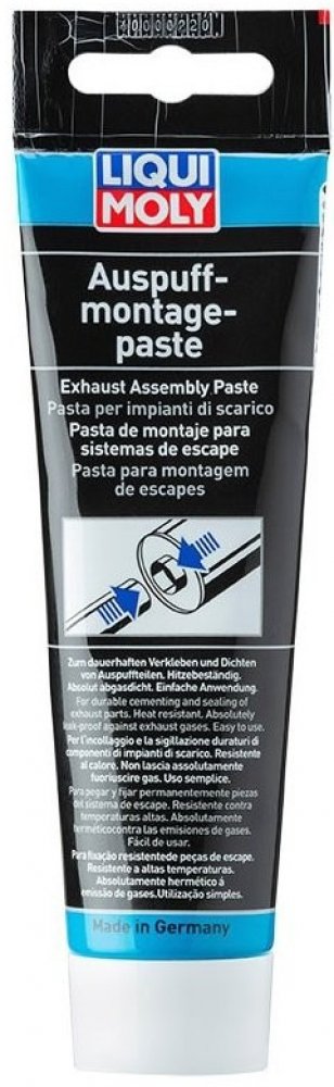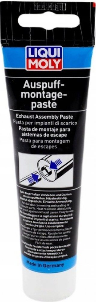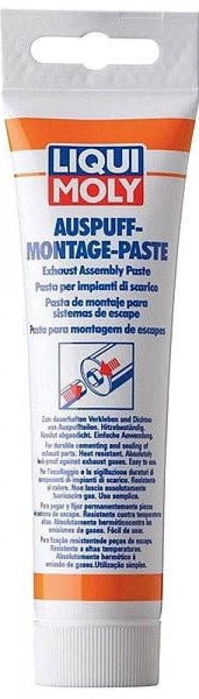 Prostředek je pasta určená pro trvanlivé utěsnění dílů výfukového systému automobilu. Pasta je odolná proti teplotě a absolutně těsná proti průchodu výfukových plynů. Jednoduché a rychlé použití pro montáže výfukových systémů. Spojované trubkové díly se nezadřou a proto je lze opět lehce demontovat. Použití: Pro plynotěsnou montáž výfukových systémů, koncovek výfuků, šroubových a zásuvných spojů a pojistek proti zpětnému šlehnutí plamene.