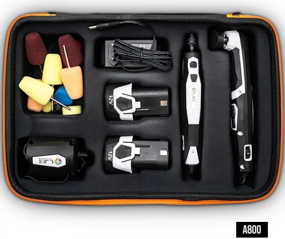 Model A800-2 je menší verzí známého modelu A1000 V4 a je určen pro nejjemnější detaily. S přiloženými unašeči o velikostech 15 mm a 25 mm a odpovídajícími lešticími kotouči je možné dosáhnout dokonalého výsledku i na těch nejmenších a nejužších místech vozidla.