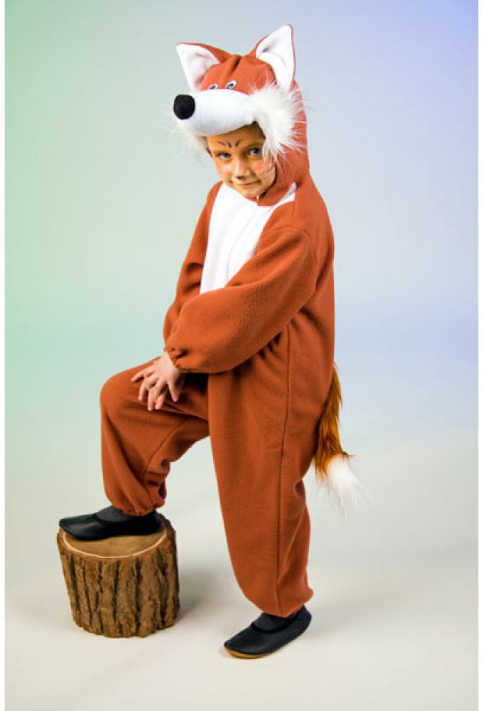 Karnevalový kostým zrzavé lišky se skládá z overalu s kapucí ve tvaru hlavy lišky.