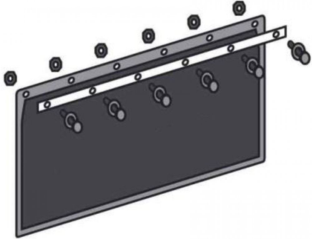 Plechová lišta pro připevnění zástěrky vč. 6ks šroubů a matic.
