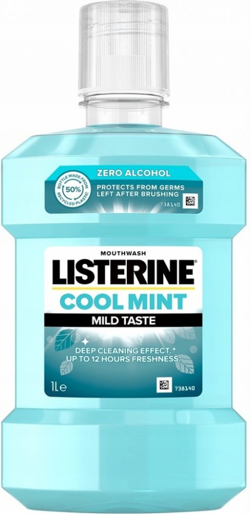 Listerine Cool Mint je ústní voda, která díky složení založenému na esenciálních olejích a fluoridu, poskytuje 24hodinovou ochranu před zubním plakem a dlouhotrvající svěží dech.
