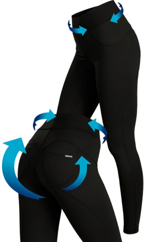 Dámské push-up legíny s kapsami. Propracované legíny se širokým pružným pasem a kapsami na zadním díle. Materiál je lehce stahující, pružný, nemačká se a velmi rychle schne. Víceúčelové legíny.