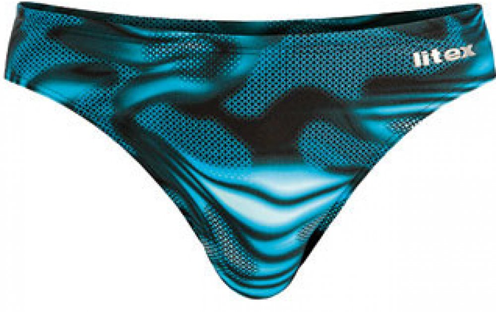Pánské vykrojené plavky. Guma vevnitř se šňůrkou na stažení. Přední díl podšitý.