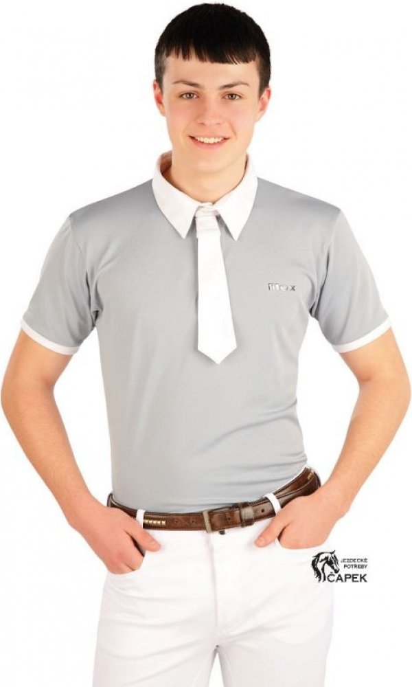 Pánské závodní tričko s všitou kravatou. elastické prodyšné všitá kravata krátký rukáv do manžety rychleschnoucí materiál: 92% polyester Thermocool fresh, 8% elastan/lycra Zákazníci hledají také: pánské tričko na závody s koňmi, parkurové triko, závodní tričko ke koním,
