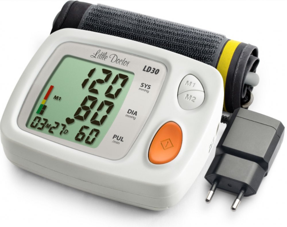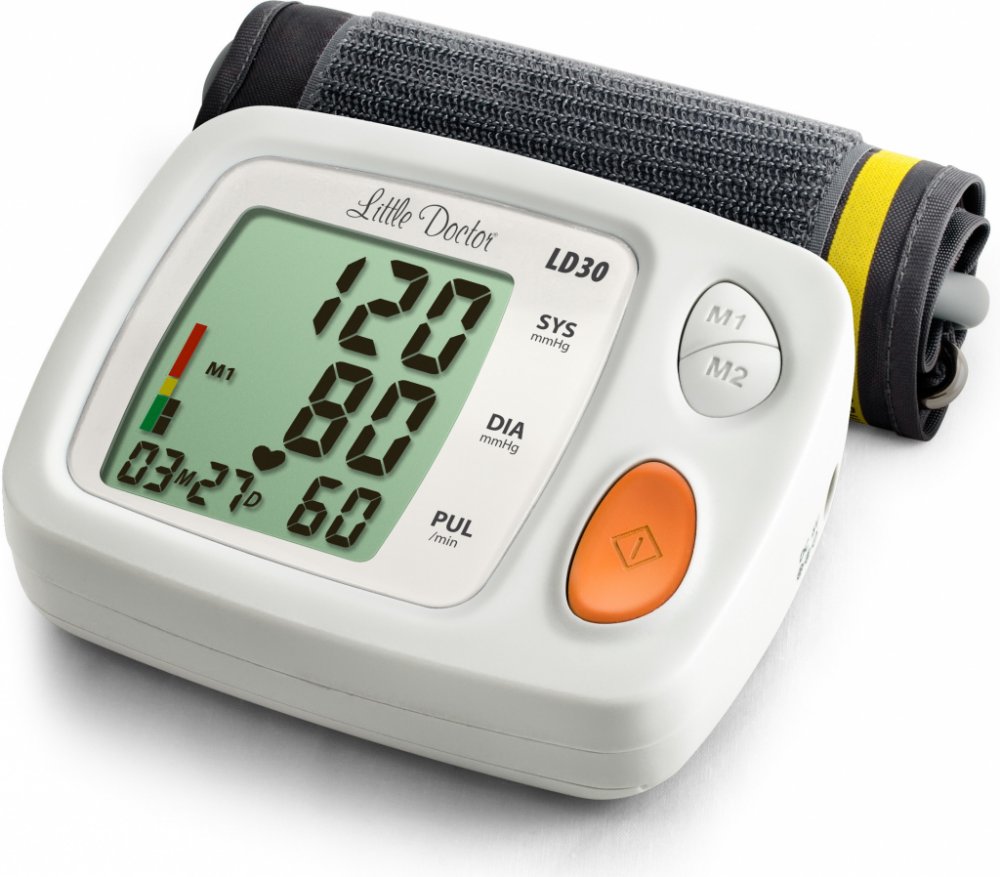 Automatický elektronický tlakoměr LD. Velký displej, standardní 25-36 cm manžeta, funkce zobrazení data a času.
