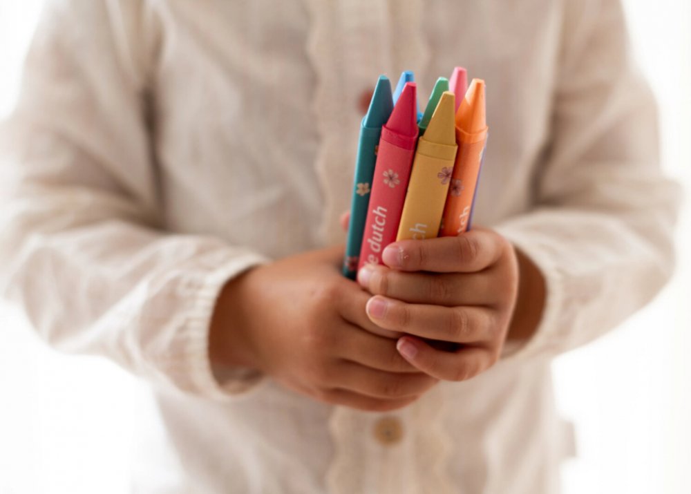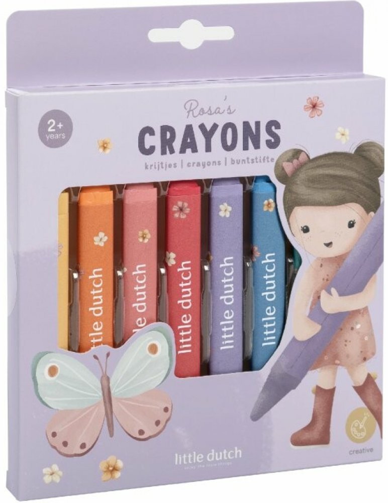 Veselé voskovky Little Dutch v sadě 8 jemných odstínů skvěle padnou do malých ruček díky trojúhelníkovému tvaru. Podporují správný úchop, jemnou motoriku a první kreslení. Ideální pro malé umělce od 2 let.