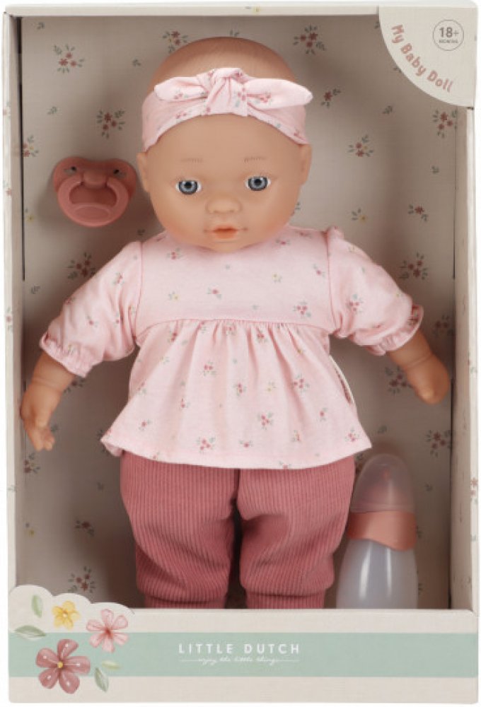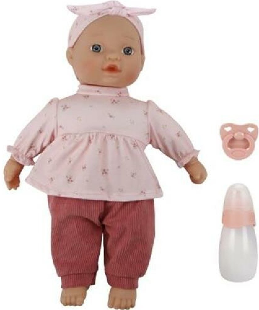 Roztomilou panenku v podobě miminka může vaše holčička i chlapeček převlékat, chovat, krmit lahvičkou, uklidňovat dudlíkem i vozit v kočárku. Panenka je oblečena do něžných růžových šatiček, žebrovaných kalhot a čelenky, součástí balení je i lahvička a dudlík.