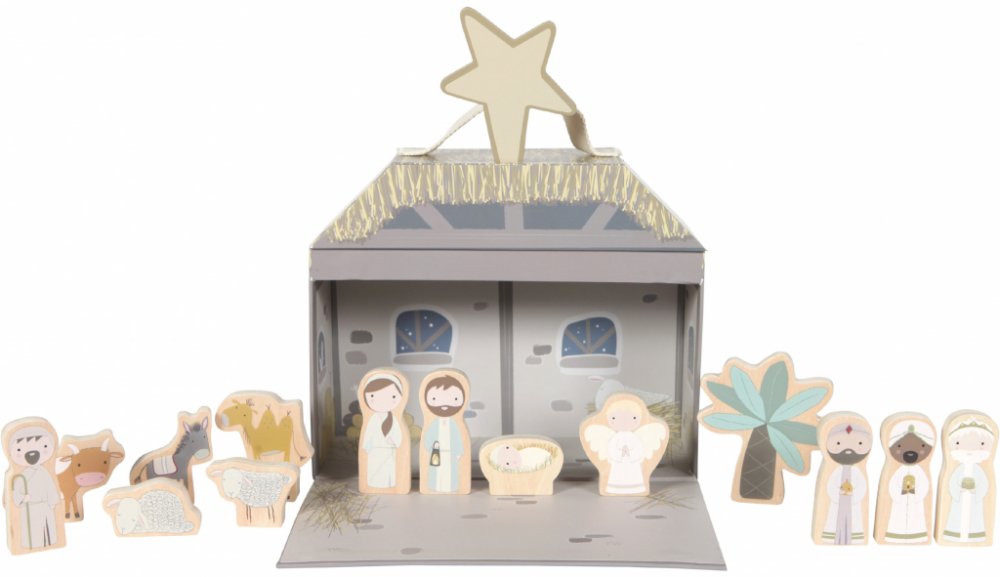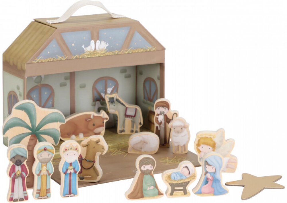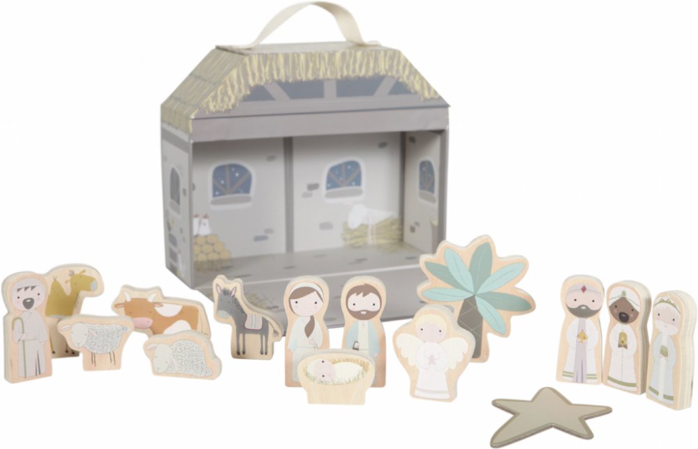 Tichá noc, svatá noc! Děti si s touto betlémskou scénou mohou hrát skvěle! Všechny známé postavy tradičního vánočního příběhu jsou přítomny kolem jeslí Ježíše! To bude pravděpodobně velmi speciální vánoční dobrodružství! Sada se snadno přenáší a skladuje. Pouzdro je vyrobeno z odolného kartonu a postavy jsou vyrobeny ze dřeva. Soubor se skládá z:- kufru- Ježíška- Josefa a Marie- anděla- pastýře- vola a osla- 2 ovce- tří moudrých mužů- velblouda- palmy- hvězdy Pokyny pro údržbu: otřete navlhčeným hadříkem Little Dutch: Již téměř 70 let je Holandská firma Tiamo odborníkem v oblasti dětských hraček. Každý rok se snaží přinést výrobky v atraktivních barvách, provedených ve vysoké kvalitě. Snaží se přidávat hodnotu produktů prostřednictvím barev, zvuků a pohyblivých částí. Tyto aspekty stimulují koordinaci smyslů vašeho dítěte a podporují růst a rozvoj. Klade důraz na bezpečnost, bezpečnost je pro Tiamo mimořádně důležitá. Všechny výrobky jsou podrobně testovány a splňují nejnovější evropské bezpečnostní normy. Všechny výrobky jsou certifikovány CE a obsahují značku CE.