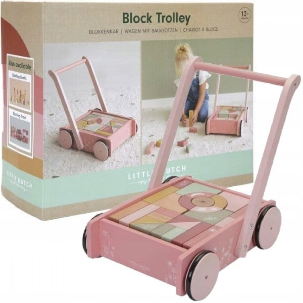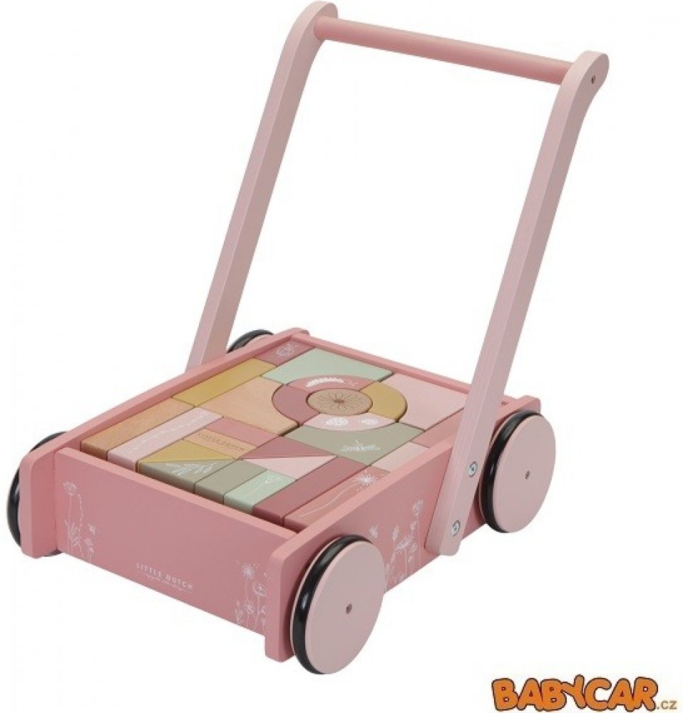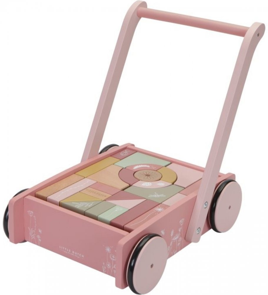 Dřevěný vozík v podobě růžového auta s krásným květinovým potiskem je jako stvořený pro převážení oblíbených hraček, plyšáků apod. Vozík využijete i pro společné uklízení hraček a bude sloužit i jako krásná dekorace v dětském pokoji.