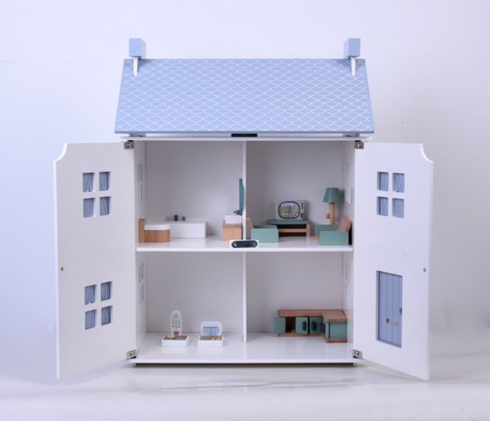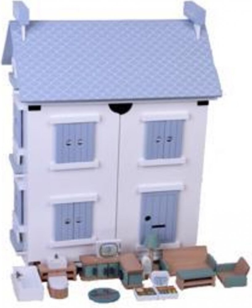 Tento klasický domeček pro panenky zaručuje spoustu zábavy. Robustní dřevěný rám má roztomilé modré žaluzie a modrou střechu, kterou lze odstranit a zobrazit tak podkroví. A další: střešní panel je ve skutečnosti zahrada! Dům má 19 kusů nábytku a doplňků, takže si s ním můžete hned hrát. Zahrnuje také nálepky, které vám pomohou vyzdobit dům jedinečným způsobem. K dokončení dekorací jsou k dispozic...