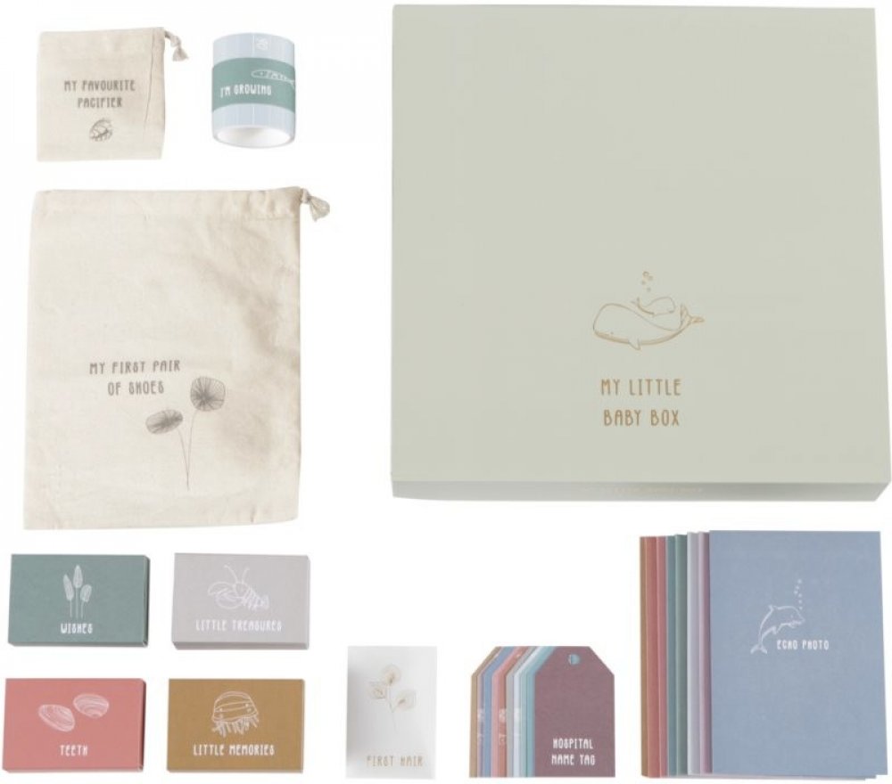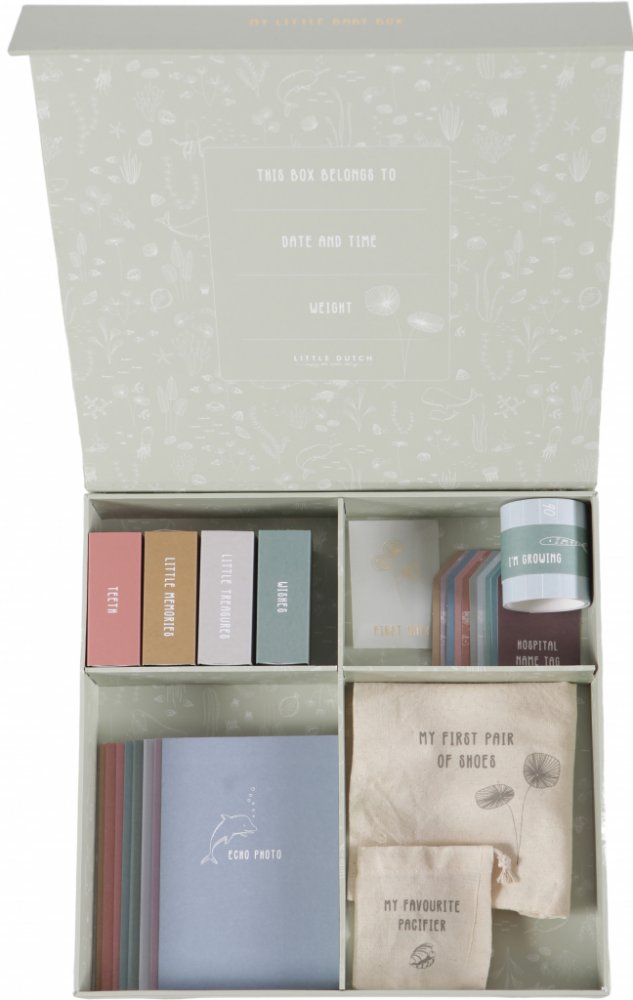 Do boxíku uschováte například první vlásky, otisly ručiček, nožiček, první botičky nebo zoubky.