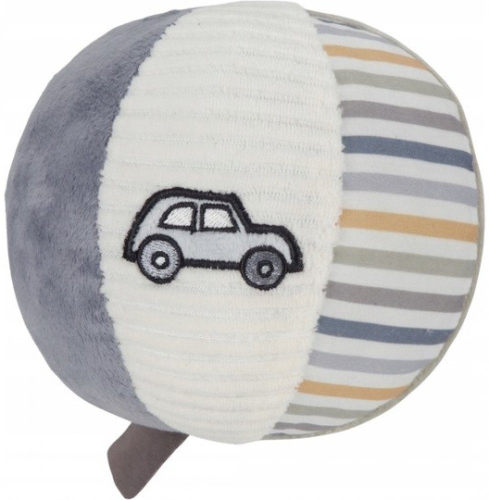 Různorodé textury a vzory lákají dítě ke zkoumání, míček navíc při pohybu jemně cinká.