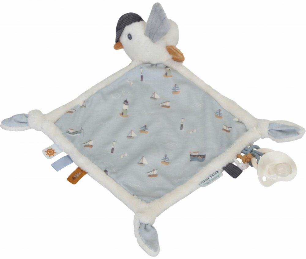 Jedná se o krásný měkký muchláček z motivu Little Dutch Námořnický záliv. Na látce je veselý plyšový racek. Usínáček má také různé zóny na dotek a cítění, které stimulují smysly dítěte. S touto hračkou si děti mohou hrát ve svých ohrádkách, nebo s nimi spinkat. Muchláček je také skvělým dárkem pro každé miminko.