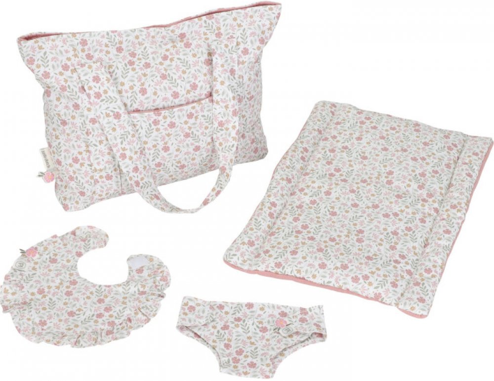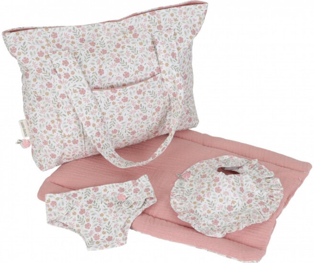 S touto stylovou přebalovací taškou budete vždy připraveni na jakékoli dobrodružství s panenkou! Taška obsahuje vše, co potřebujete pro péči o svou panenku: měkkou plenku, pohodlnou přebalovací podložku a roztomilý bryndák, vše v krásném designu Soft Flowers. Taška je lehká a snadno se přenáší, takže budete vždy dobře připraveni na cesty. Ideální pro hraní rolí a simulování skutečných momentů péče...