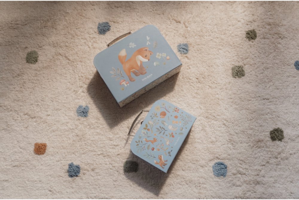 Sada klasických dětských kufříků v kvalitním provedení s krásným potiskem motivů ze života v lese. Sadu tvoří dva kufříky, menší kufřík má velikost, která se vejde do většího kufříku pro úsporu místa při skladování. Oba kufříky mají klasické kovové madlo pro snadné přenášení a zámek pro bezpečné uzavření obsahu. Kufříky jsou ideální pro ukládání drobných hraček, výtvarných potřeb a pod. a budou sloužit i jako krásná dekorace v dětském pokoji. Sada je součástí designové kolekce hraček a doplňků Little Dutch Forest Friends inspirované životem v lese. Rozměry většího kufříku: 25 x 20 x 8,9 cm Vhodné pro děti od 2 let. O značce Little Dutch Little Dutch je holandská značka pro miminka, batolata a předškoláky s více než 10 letou tradicí, která se specializuje na výrobu kvalitních dětských hraček, oblečení a doplňků. Produkty této značky jsou všestranné, zajímavé a praktické. Do domu nebo na cesty. Charakteristické moderním designem, pastelovými barvami a bezpečnými materiály, které jsou šetrné k životnímu prostředí. Little Dutch nabízí široký sortiment produktů jako hrací deky, stylové dřevěné stavebnice a dřevěné kostky, rozmanité druhy skládaček, dřevěná autíčka a vláčky, nastrkovací kroužky, kreativní sady, samolepky, dětské hudební nástroje i chrastítka rozvinou motoriku, logiku a smysly děťátka. Od hraček a ložního prádla až po nezbytnosti a dekorace. Výrobky a produkty Little Dutch mají nadčasový styl, jsou zábavné na hraní a jsou naprosto bezpečné pro děti. Little Dutch je rodinná firma, která má svůj původ v podkroví. Zakladatelka Rinke van der Helm říká: „Když jsem byla těhotná s naším nejstarším dítětem, hledala jsem krásné doplňky do dětského pokoje. Jelikož jsem je neuměla najít, začala jsem vyrábět vlastní lampy. Dostal jsem spoustu pozitivních reakcí z okolí, bylo úžasné a přimělo mě to chtít víc. Jsem neskutečně hrdá na to, že Little Dutch se z té jedné lampy rozrostla na mezinárodní značku s rozsáhlým sortimentem pro miminka, batolata a předškoláky. S mým týmem budeme nadále hledat nové způsoby, jak udělat radost ještě více dětem a rodičům.“ Little Dutch produkty a hračky jsou vyrobeny s největší péčí a pozorností. Navíc si rodiče mohou být jisti, že každý kus je důkladně testován. Každý produkt má propracované detaily a je vyroben z vysoce kvalitních materiálů.