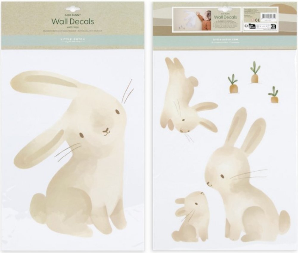 Krásné samolepky v podobě králičí rodinky a mrkviček jsou určené pro použití na stěně, okně či jakémkoli hladkém a rovném povrchu. Stanou se krásnou dekorací v dětském pokoji a budou pomáhat rozvíjet fantazii vašeho dítěte. Samolepky z vinylového materiálu s matným povrchem a průhlednými okraji se snadno aplikují a snadno je i odstraníte. Samolepky jsou součástí designové kolekce hraček a doplňků Little Dutch Baby Bunny. Balení obsahuje obsahuje samolepky na 2 arších formátu 42 x 30 cm.