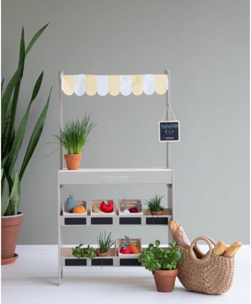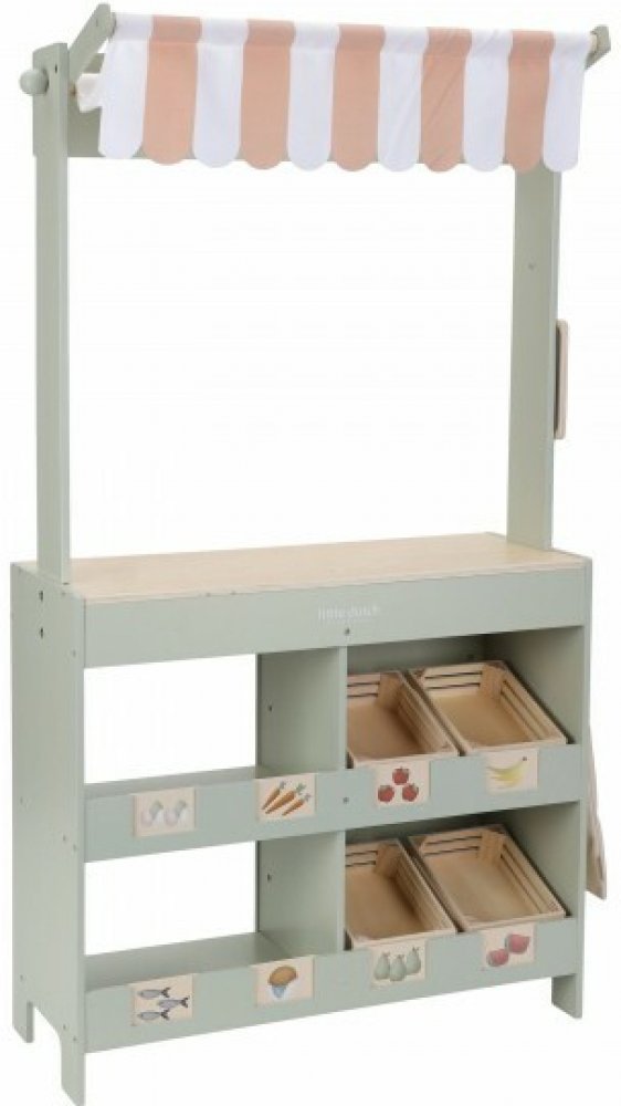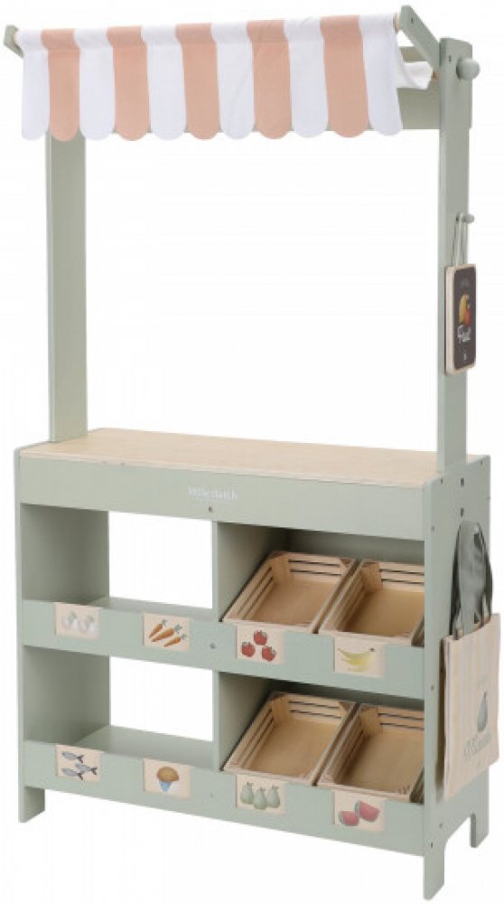 Tento dřevěný stánek je ideální pro kreativní hraní, rozvoj fantazie a sociálních dovedností. Malí obchodníci a podnikatelé si ho zamilují – ať už prodávají na trhu, vedou vlastní kavárnu nebo vymýšlejí naprosto originální příběhy.