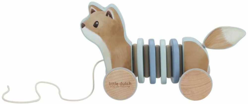 Podrobnosti o produktu 7257LD Liška na kolečkách v krásném dřevěném provedení má šňůrku, aby ji dítě mohlo tahat za sebou.