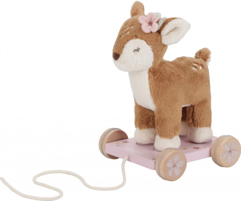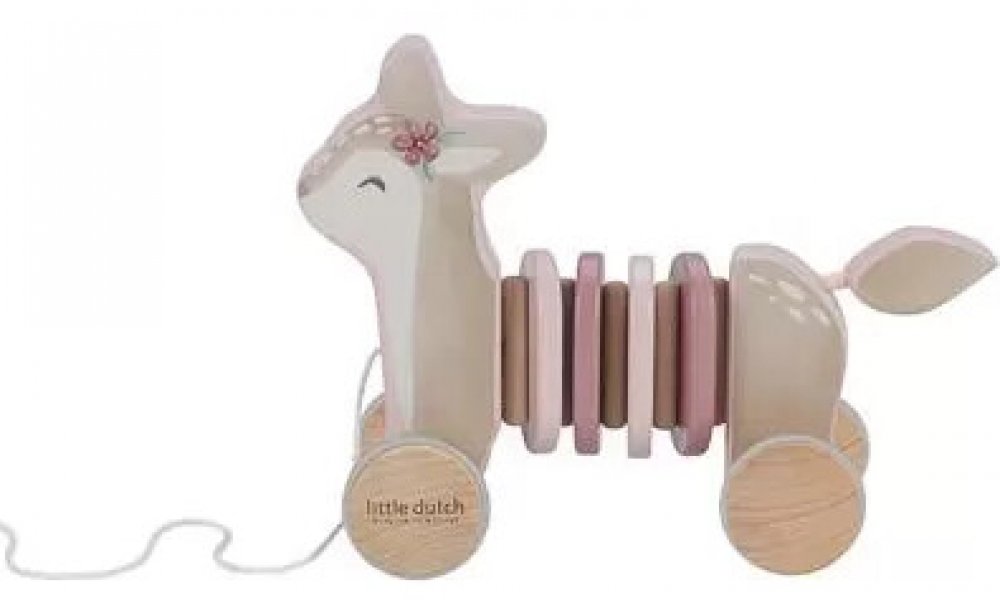 Srnka na kolečkách v krásném dřevěném provedení má šňůrku, aby ji dítě mohlo tahat za sebou.