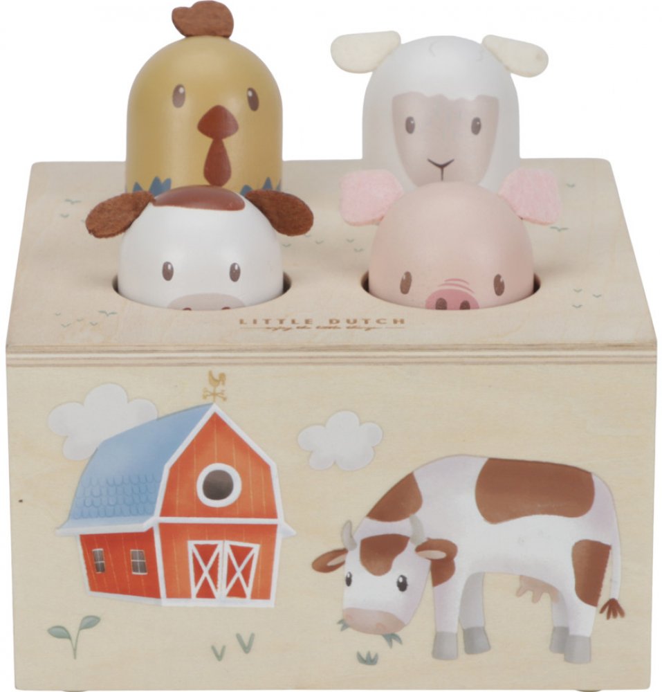 Objevte kouzlo farmy s touto originální dřevěnou hračkou od Little Dutch! Zatlačením na hlavičku jednoho zvířátka se jiné vysune a zároveň uslyšíte realistické zvuky, které vydávají prasátko, ovečka, kravička a slepička. Děti si zamilují tento hravý způsob poznávání zvířátek, který zároveň rozvíjí jejich představivost a kognitivní dovednosti.