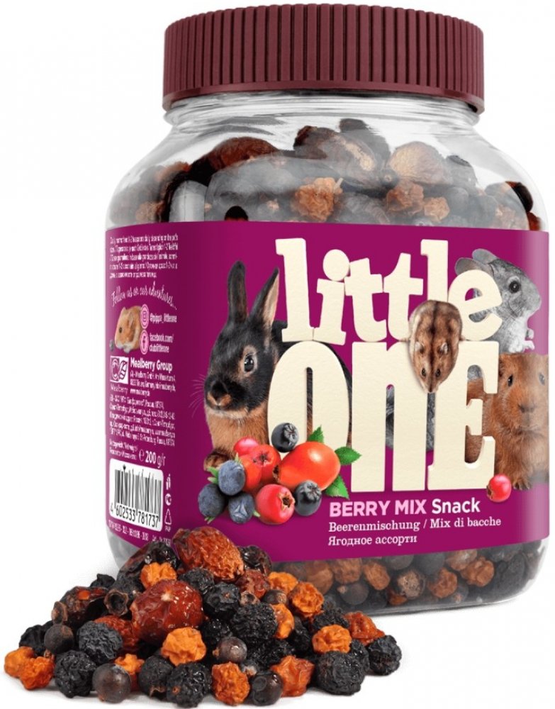 Lahodná směs bobulí, která se podává jako pamlsek pro malé hlodavce. Nová vylepšená varianta s jeřabinami, brusinkami, aronie, morušemi, rozinkami, třešněmi, jalovci a ananasovými třešněmi. Sušené bobule nejsou jen pochoutkou pro domácí mazlíčky. Každý z nich také přispívá jinými vitamíny a minerály a každý má své vlastní pozitivní vlastnosti.