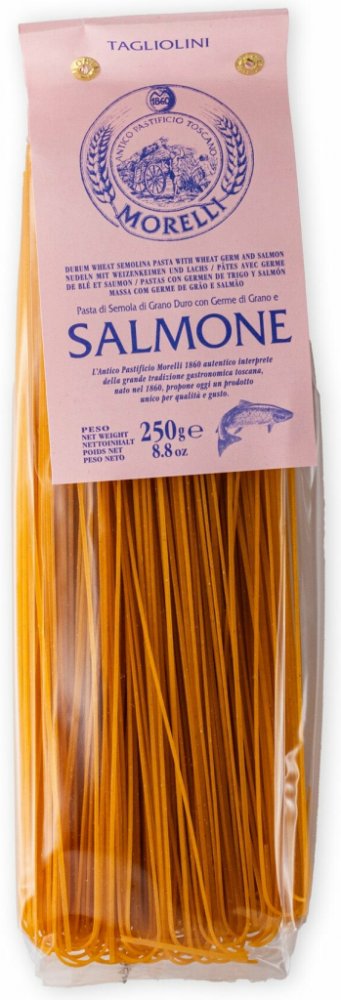 Tagliolini s příchutí lososa přinášejí decentní mořský akcent, který vynikne v jednoduchých kombinacích. Úzký, dlouhý tvar a porézní semolinový povrch zajišťují, že se omáčka rovnoměrně přichytí – ať už jde o lehkou citronovo-bylinkovou emulzi, smetanu s koprem, nebo olivový olej s kapary a šalotkou. Ideální volba, když chcete rychle, lehce a přitom gurmánsky.