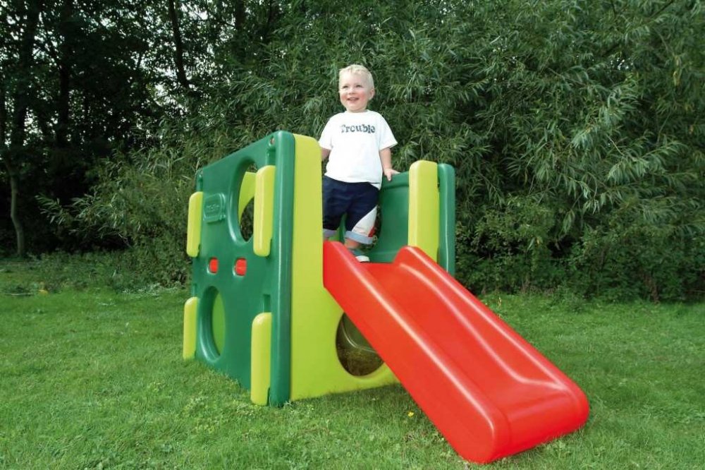 * Po stěnách je možno vylézt nahoru ke skluzavce, po ní pohodlně sjet dolů a ukrýt se ve spodní části prolézačky.