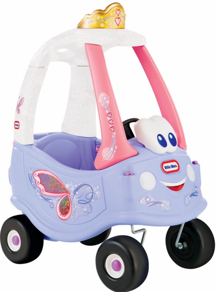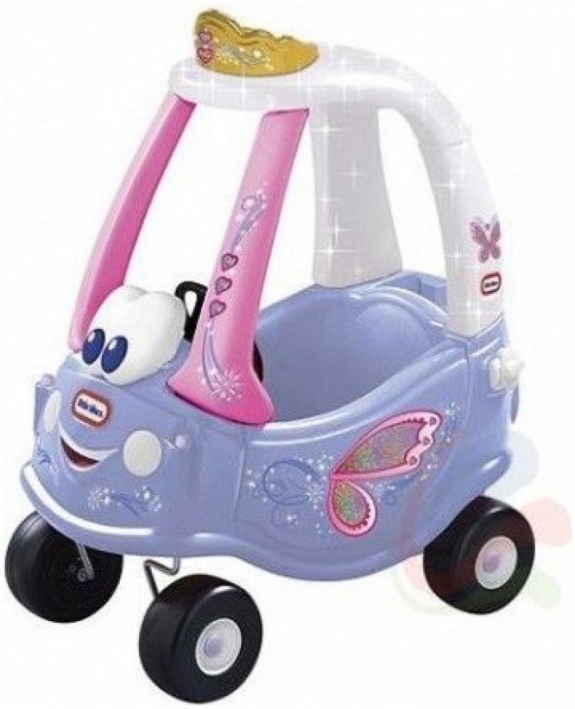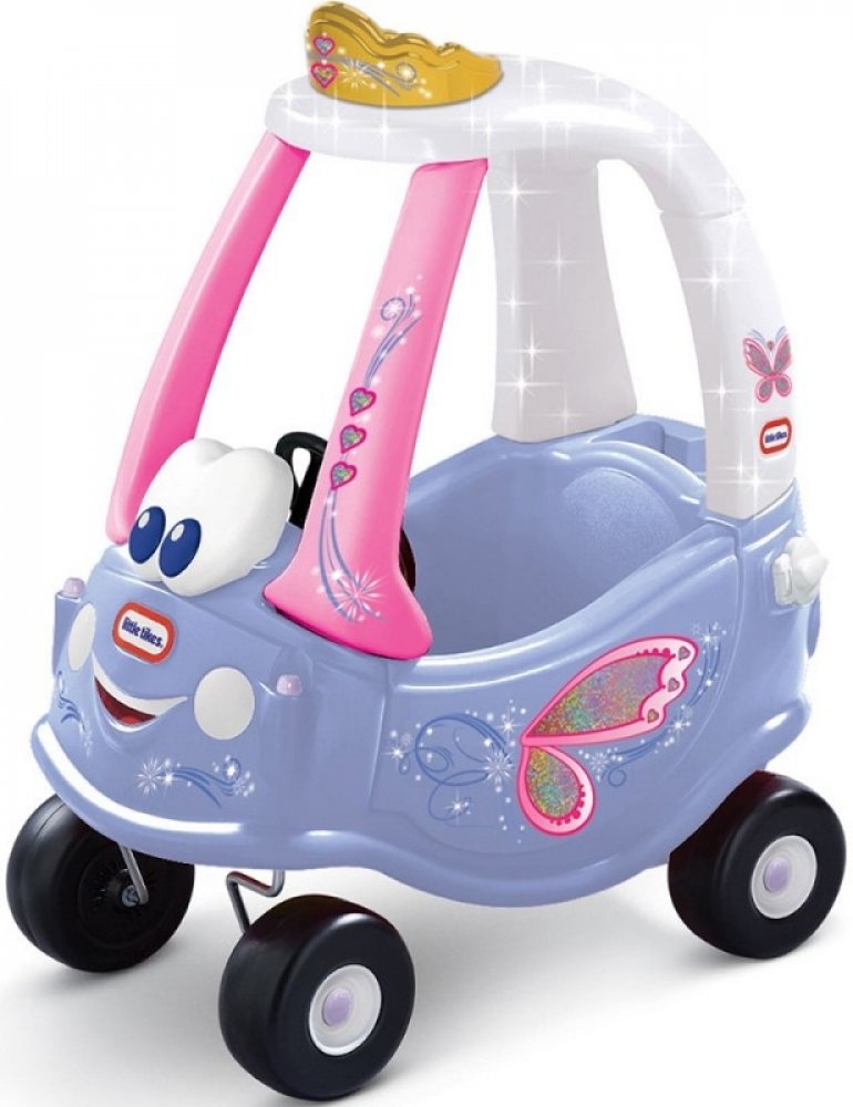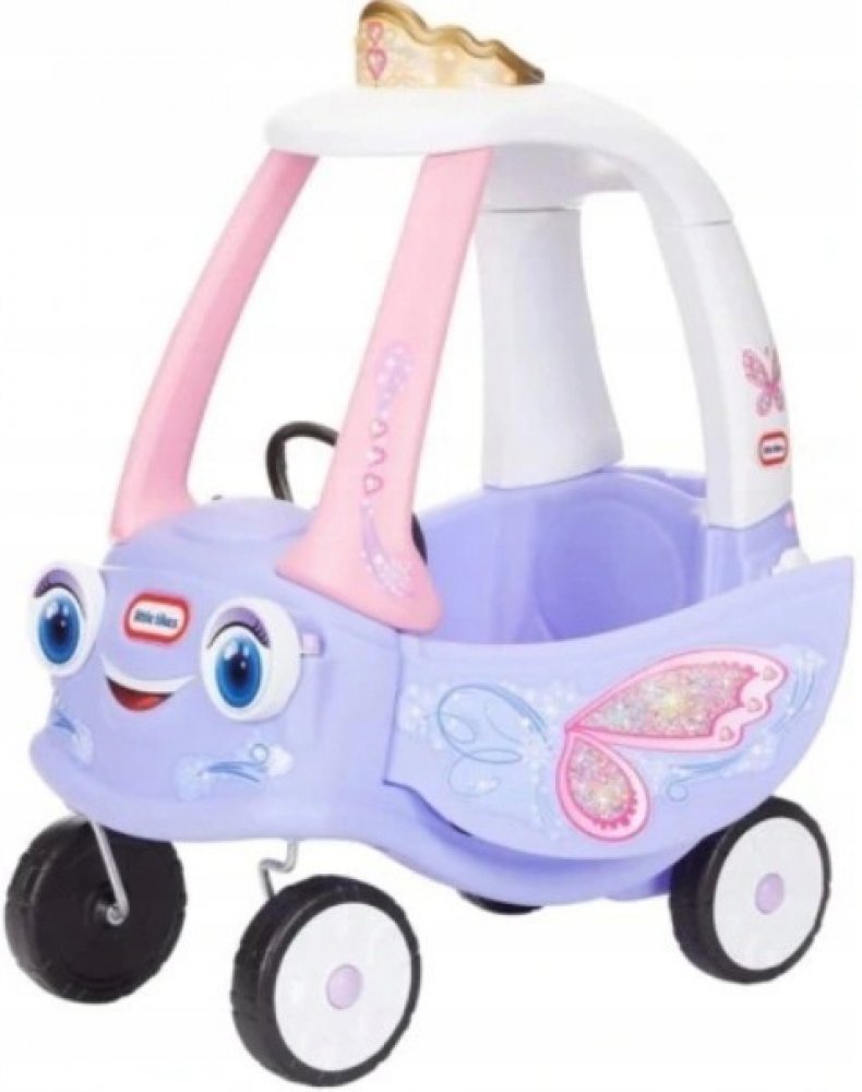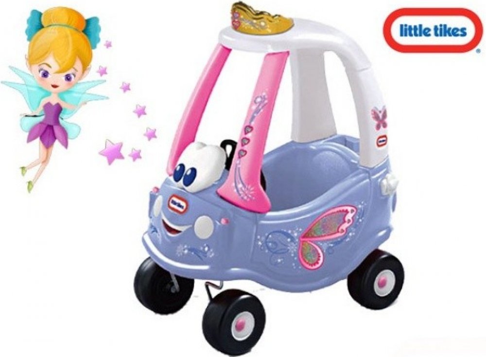 Plastové vozítko v provedení jemných barev s vílím motivem čeká na holčičky od roku a půl. Po sednutí do kabinky se odrážejí nožičkami nebo sedí a za madlo v horní části je vezou dospěláci. Pro troubení při jízdě je instalovaný klakson. Ve vozítku lze také uložit potřebné drobnosti.