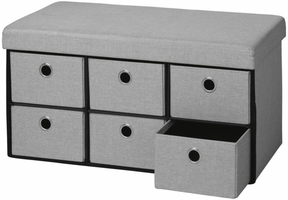 Livarno Home Lavice s úložným prostorem Odnímatelná polstrovaná sedací plocha 6 zásuvek s množstvím úložného prostoru Snadné sestavení bez použití nářadí Vysoká stabilita – nosnost do cca 110 kg Objem každé přihrádky: cca 10 l Materiál Vnější materiál: polyester Vnitřní materiál: polypropylen Nástěnné panely a příčky: MDF Polstrování sedací části: polyuretanová pěna Rozměry cca 76 x 38 x 38 cm Š x...