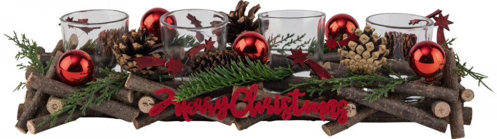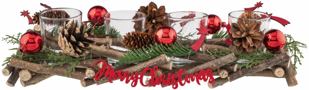 Livarno home Adventní dekorace Rustikální design - ideální jako sváteční dekorace ve vánočním čase FSC ® certifikované dřevo s pravými šiškami 4 skleněné svícny na čajové svíčky Délka: cca 35 cm Materiál Červená; zlatá: strom líska; sklo, PE, překližka Stříbrná: strom líska; sklo, překližka Rozměry cca 350 x 125 x 90 mm Hmotnost cca 660 g