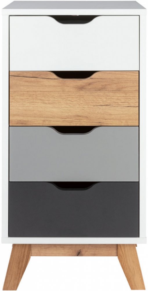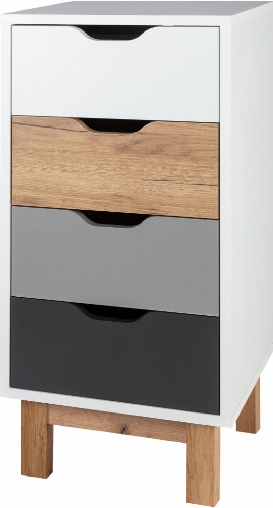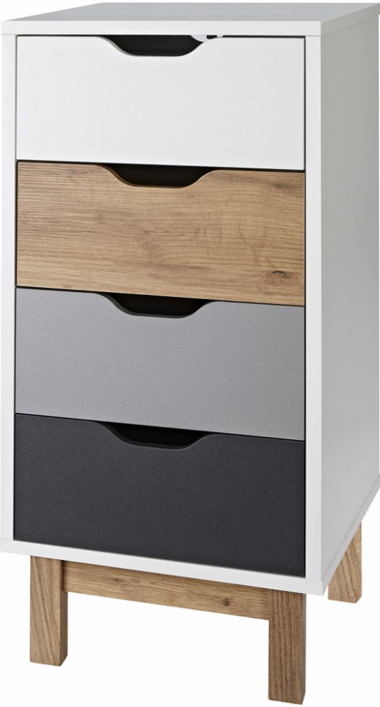 LIVARNO home Komoda se 4 zásuvkami Copenhagen Moderní vzhled ve skandinávském stylu Zásuvky s hladkým chodem a praktickými úchopnými otvory Povrch je odolný a nenáročný na údržbu díky povrchové úpravě z melaminové pryskyřice Včetně montážního materiálu a návodu k použití Materiál Dřevotřísková deska s povrchem z melaminové pryskyřice, HDF, ABS, papír Rozměry cca 40 x 85 x 35 cm (Š x V x H) Hmotnos...