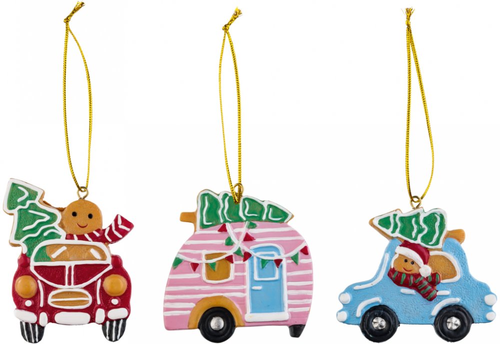 LIVARNO home Ozdoby na vánoční stromek, 3dílná sada auto přívěs