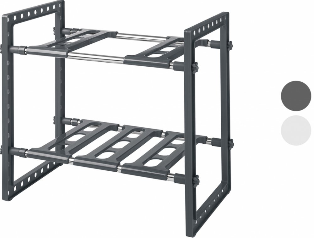 Livarno home Přídavný výsuvný regál Praktický pomocník pro optimální využití prostoru Přídavný úložný prostor ve skřínce nebo na pracovní desce díky 2 odkládacím plochám Šířka variabilní Jednoduché sestavení Max. nosnost na odkládací plochu: cca 2,5 kg Max. nosnost celkem: cca 5 kg Materiál Plast, nerezová ocel Rozměry cca 40;5–70;5 x 26 x 39 cm D x Š x V Hmotnost cca 900 g