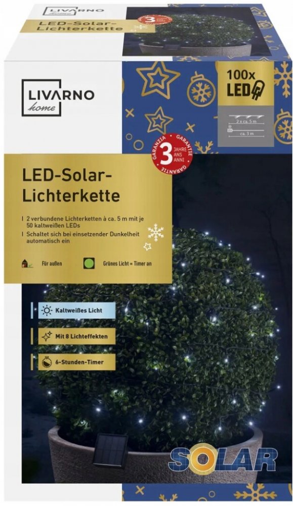 LIVARNO VÁNOČNÍ OSVĚTLENÍ NA STROMEČEK SOLÁRNÍ DEKORATIVNÍ VÁNOČNÍ GIRLANDA 100 LED