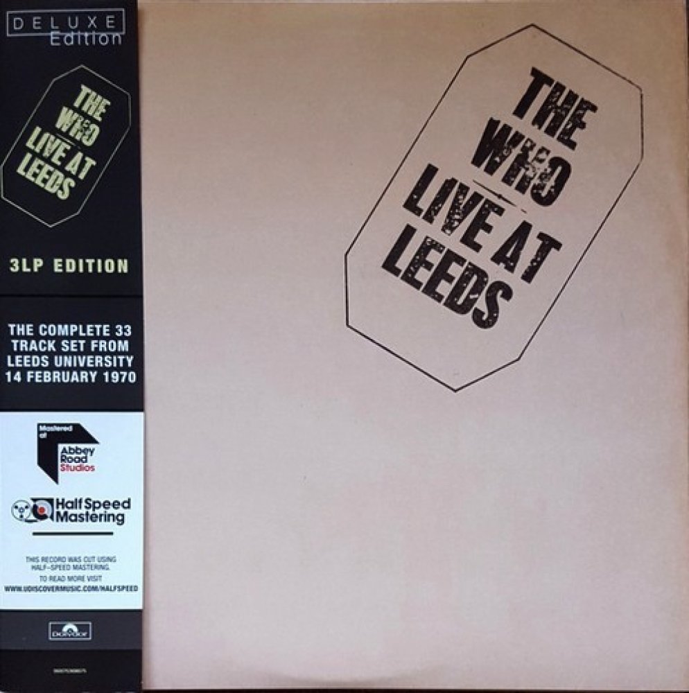 kompletní koncert v Leedsu, trifold, 180gr heavy weight vinyly, half-speed mastering, download, vnitní přebaly, track list: A1 Heaven And Hell 5:06 / A2 I Can't Explain 2:26 / A3 Fortune Teller 2:34 / A4 Tattoo 3:00 / A5 Young Man Blues 5:14 /// B1 Substitute 2:07 / B2 Happy Jack 2:13 / B3 I'm A Boy 2:45 / B4 A Quick One, While He's Away 8:39 /// C1 Overture 6:51 / C2 It's A Boy 0:31 / C3 1921 2:25 / C4 Amazing Journey 3:17 / C5 Sparks 4:21 / C6 Eyesight To The Blind (The Hawker) 1:58 / C7 Christmas 3:18 /// D1 The Acid Queen 3:34 / D2 Pinball Wizard 2:52 / D3 Do You Think It's Alright? 0:21 / D4 Fiddle About 1:13 / D5 Tommy Can You Hear Me? 0:55 / D6 There's A Doctor 0:22 / D7 Go To The Mirror 3:24 / D8 Smash The Mirror 1:18 / D9 Miracle Cure 0:12 / D10 Sally Simpson 4:00 / D11 I'm Free 2:38 /// E1 Tommy's Holiday Camp 1:00 / E2 We're Not Gonna Take It 8:47 / E3 Summertime Blues 3:22 / E4 Shakin' All Over 4:34 /// F1 My Generation 15:24 / F2 Magic Bus 7:54