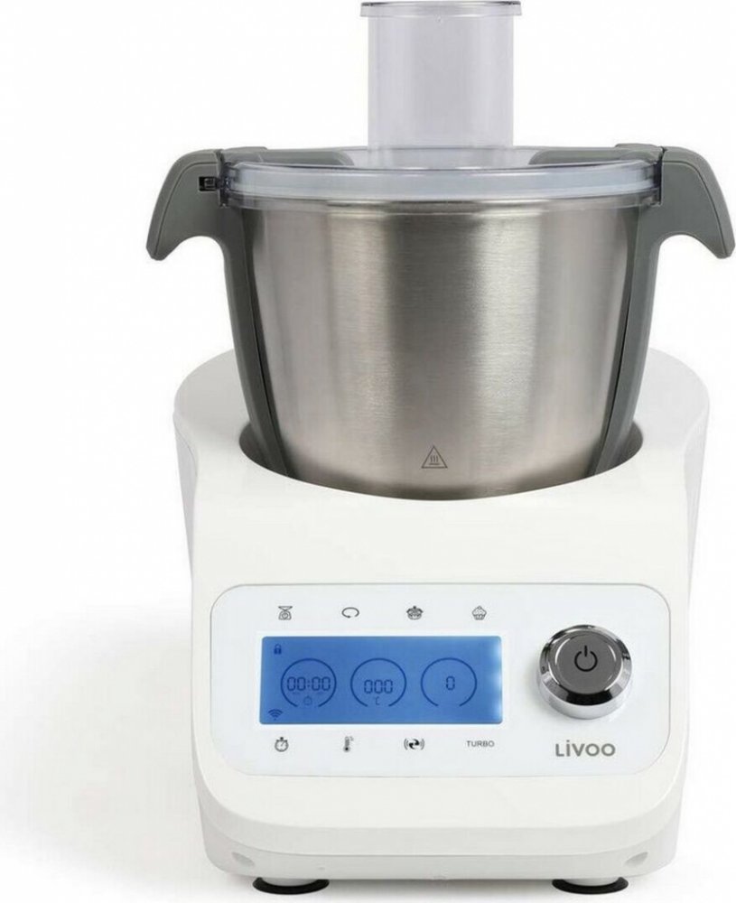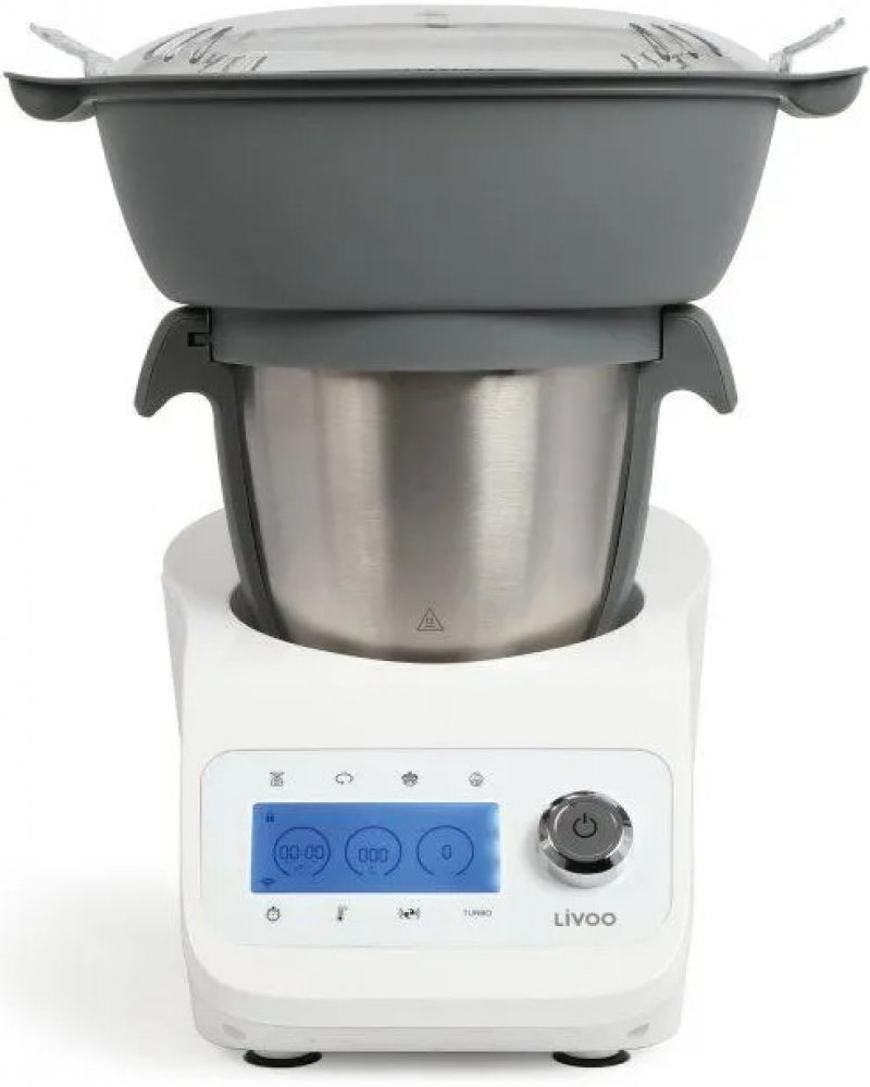 Multifunkční robot s příkonem 1000 W a nádobou o objemu 3,5 litru. Livoo DOP219W je vybaven funkcí vaření, váhou, LCD obrazovkou a noži nerezové oceli. Samočistící program pro úsporu času. Bezpečnostní zavírací systém.