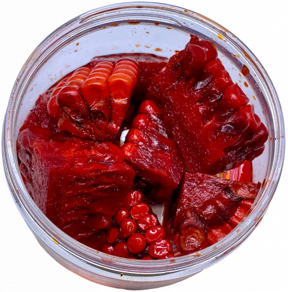 Nakládané kousky mladé kukuřice jsou velmi funkční nástrahou pro lov kaprovitých ryb. Kousky jsou vytažené z aromatických nálevů z aminokyselin, kde nějaký čas fermentovaly, tak aby byly pro ryby více atraktivní. Nástraha je zpracována tak, aby byla včetně dřevnaté části, která nástrahu vyvažuje a díky jednostrannému těžišti se i lépe zasékává. Co více, tato část dřevnaté nástrahy velmi dobře nasá...