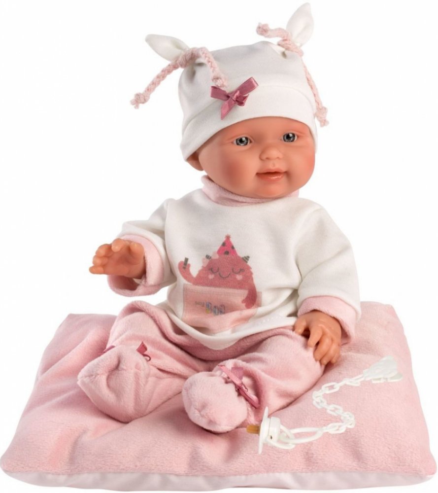 Miminko bez zvuku s vinylovým tělem s možností koupání, na kterém je zachycen doslova každý detail dětského tělíčka včetně roztomilých miminkovských faldíků a pohlaví. Ruce a nohy jsou k tělu přichycené kloubem. Miminko je polohovací a může i sedět. Dudlík v balení slouží pouze jako doplněk.