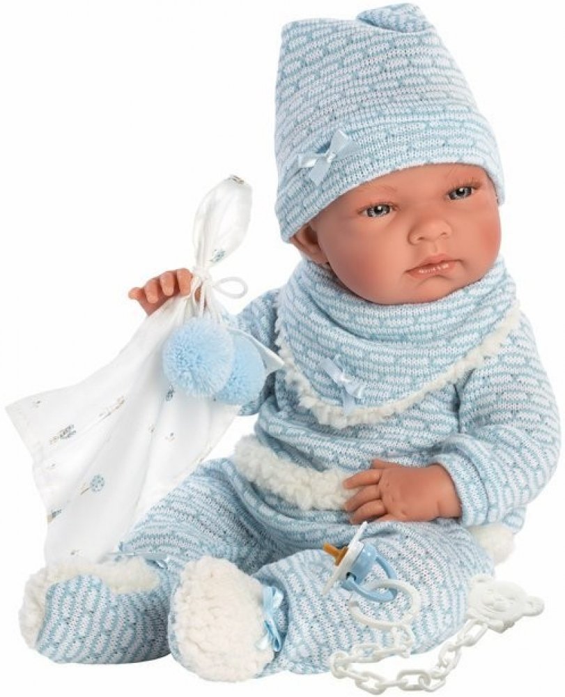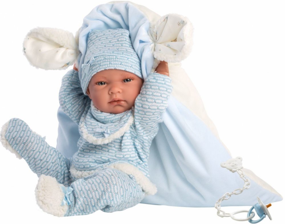 Miminko bez zvuku s vinylovým tělem s možností koupání, na kterém je zachycen doslova každý detail dětského tělíčka včetně roztomilých miminkovských faldíků a pohlaví. Miminko lze koupat, ale je potřeba dát pozor, aby se nenamočily řasy. Odlepené řasy nejsou pak důvodem k reklamaci. Ruce a nohy jsou k tělu přichycené kloubem. Miminko je polohovací a může i sedět. Dudlík v balení slouží pouze jako doplněk. Velikost 40 cm. Ručně vyrobeno ve Španělsku, baleno v dárkové krabici. Doporučený věk od 3 let. K miminku je možné dokoupit další originální oblečení z nabídky Llorens pro miminka NEW BORN velikosti 40-42 cm.