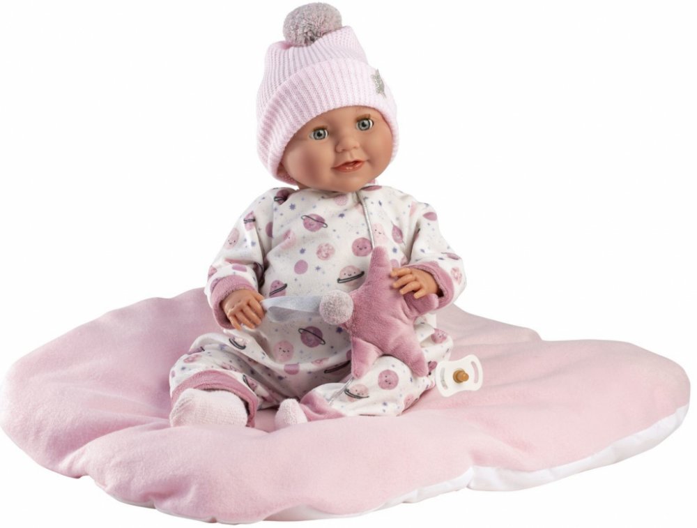 Mrkací a mluvící miminko s měkkým látkovým tělem, které po stlačení na hrudník začne říkat „mama“, „papa“ a vydávat reálný zvuk plačícího miminka. Ruce a nohy jsou k tělu přichycené kloubem. Miminko je polohovatelné a může také sedět. Dudlík v balení slouží pouze jako doplněk.