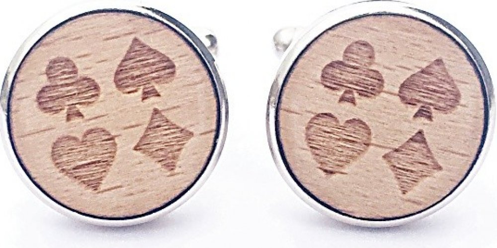 Popis: Designové dřevěné manžetové knoflíčky Poker jsou vyrobené ze dřeva a design je gravírován laserem.