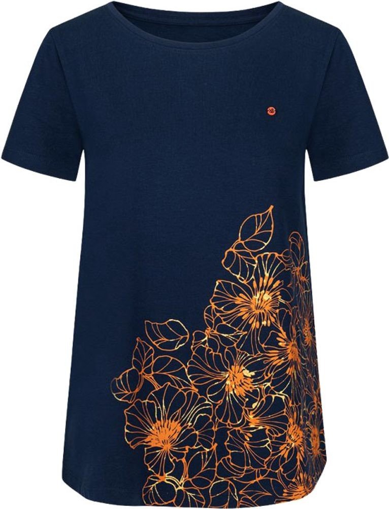 Dámské triko Loap Abana je vhodné na běžné nošení při každodenních aktivitách. Triko je ušité s krátkými rukávy ve volném střihu s lodičkovým průkrčníkem a volným spodním okrajem. Na přední i zadní straně najdete květinový potisk se třipytkami. Použitý bavlněný materiál s příměsí elastanu dělá triko příjemné na dotek, prodyšné, vzdušné a pružné.Materiál: 95% bavlna, 5% elastan