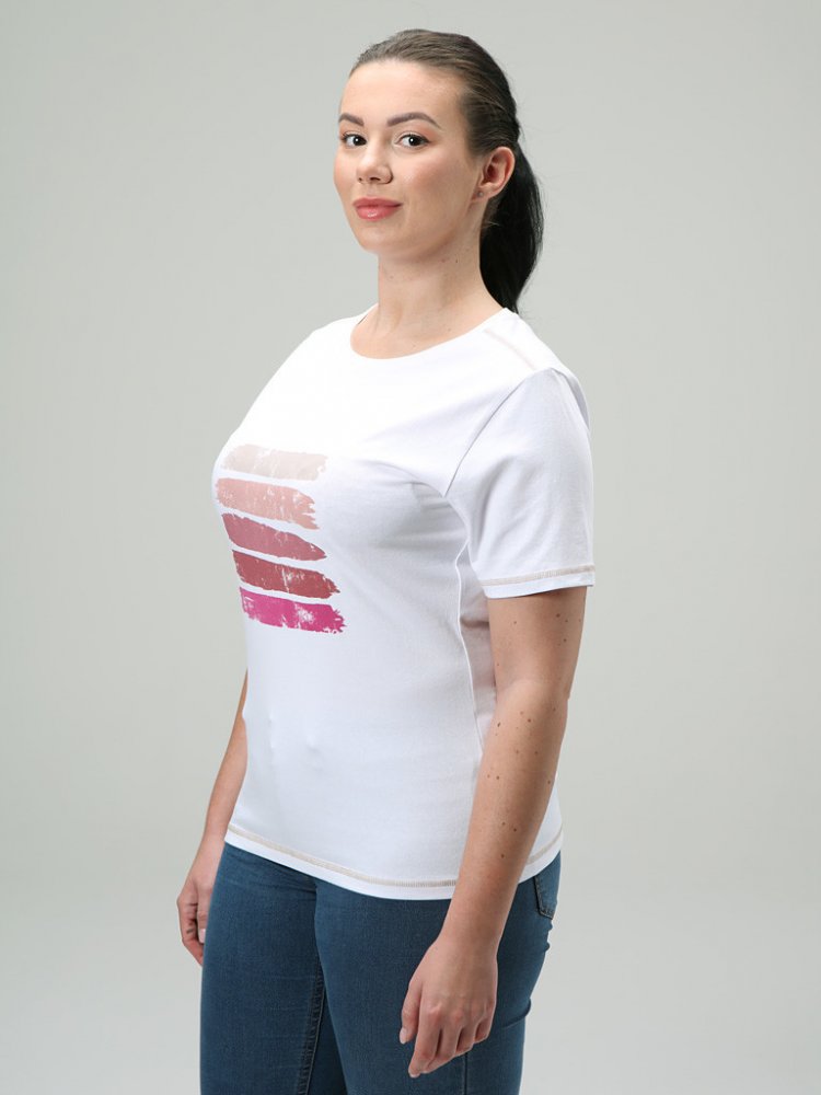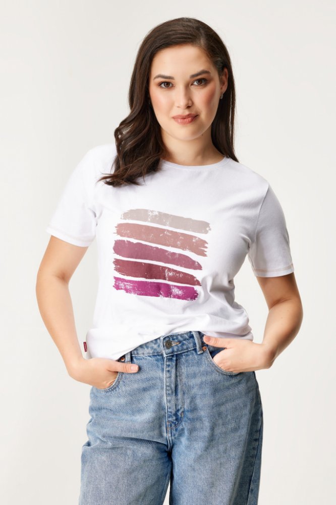 s krátkým rukávem 95% bavlna 5% elastan Loap bílá s kulatým výstřihem pruhované s malým výstřihem
